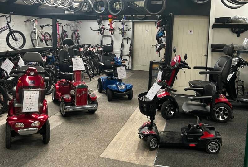 Ride a bike originally opened in 1974 on fleetgate Barton , we bought the Methodist Chapel on waterside road Barton in 1998 as a warehouse and relocated the shop to the chapel in 2002 creating much more retail space Chris then introduced mobility scooters in 2020 and we finally moved to our new premises in February 2023 which allowed us to sell the chapel so John finally retired after 49years passing ride a bike down to his son Chris who worked along side him since leaving school to run along side his mobility business